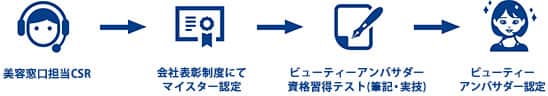 社内表彰制度・美容部門にて優秀賞を受賞したオペレーターが約6ヶ月間の美容専門研修プログラムを受講。プログラム修了後、社内試験に合格したオペレーターが認定される社内資格です。